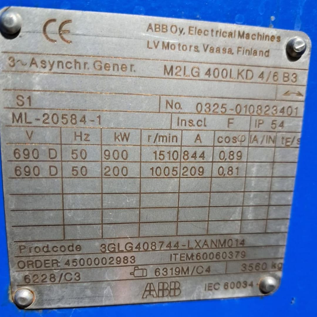 Generador ABB M2LG 400LKD 4/6 B3 NM52 ; 690V , 50Hz , 900kW , 209/844A | P001126
