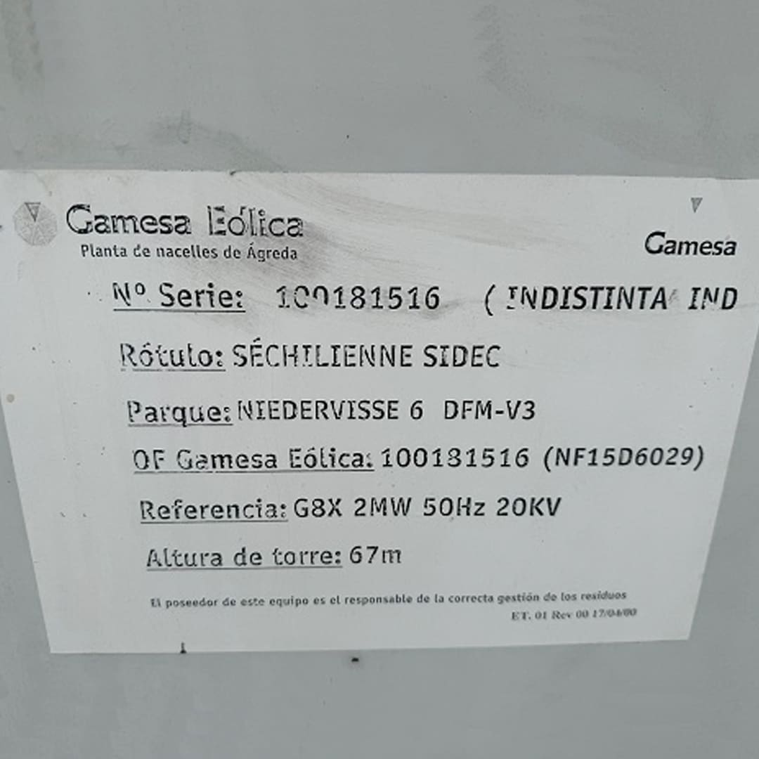 Nacelle GAMESA G8X – 2Mw DTC-AT 50Hz 20Kv 2007